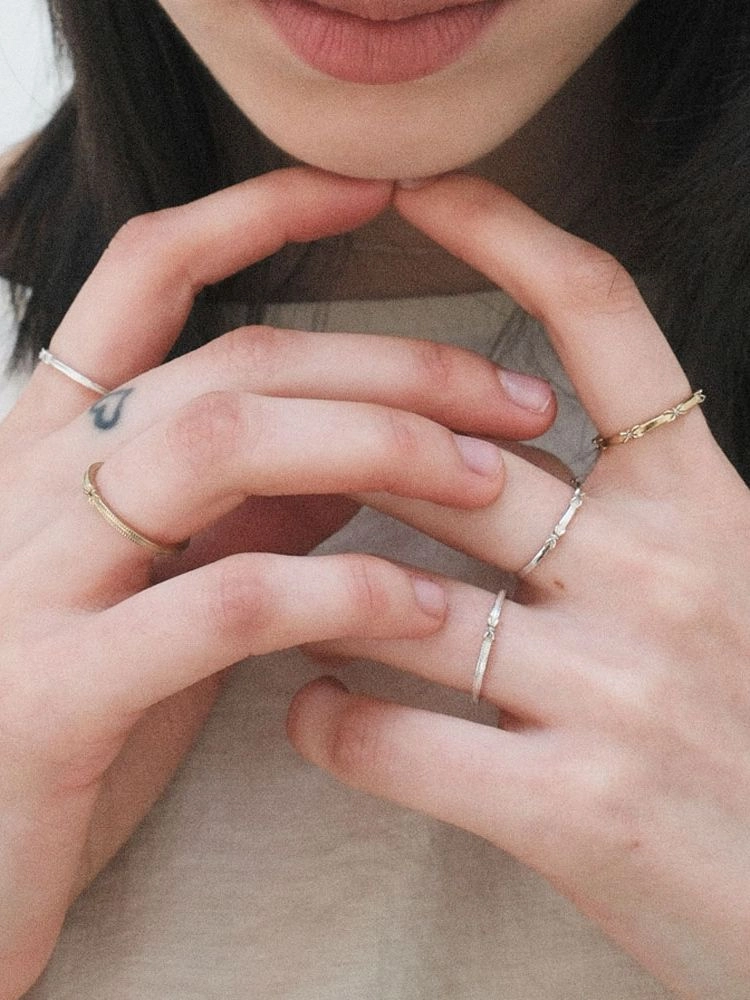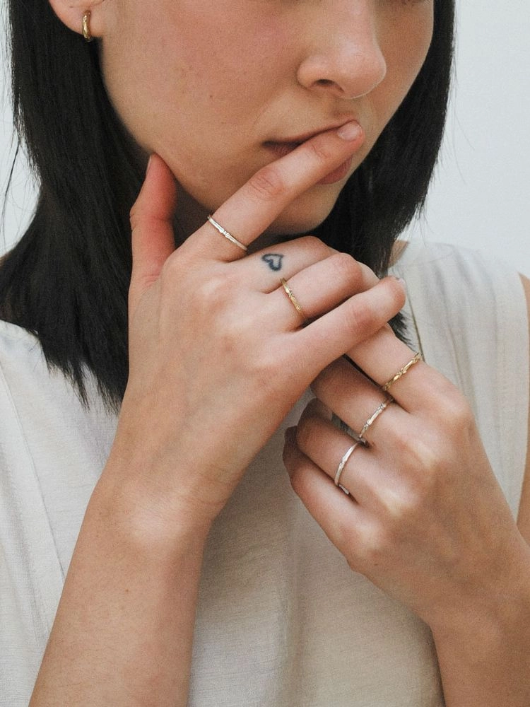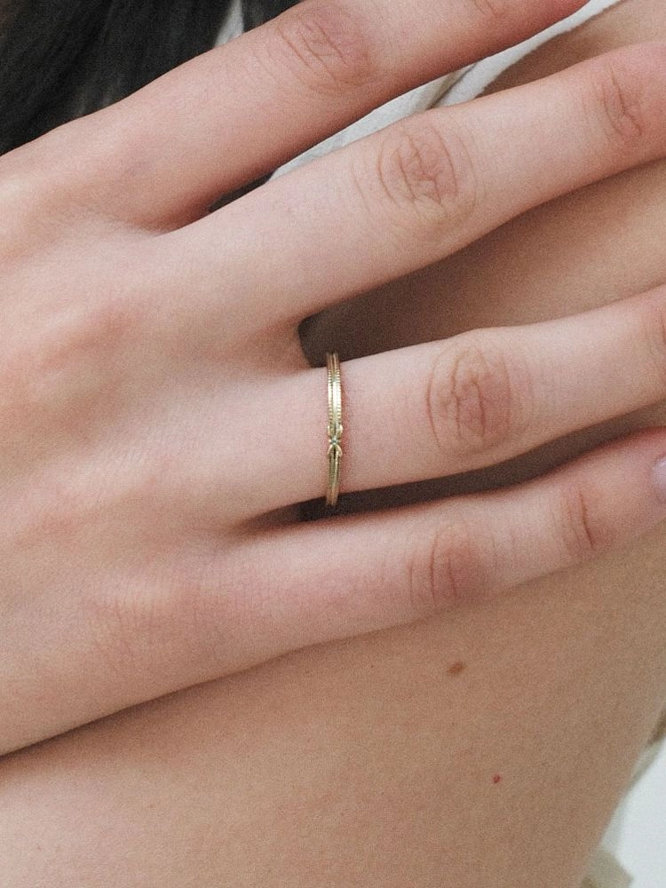 4잎 꽃잎 모티프, 중앙에 1mm 스톤 2발 프롱세팅.